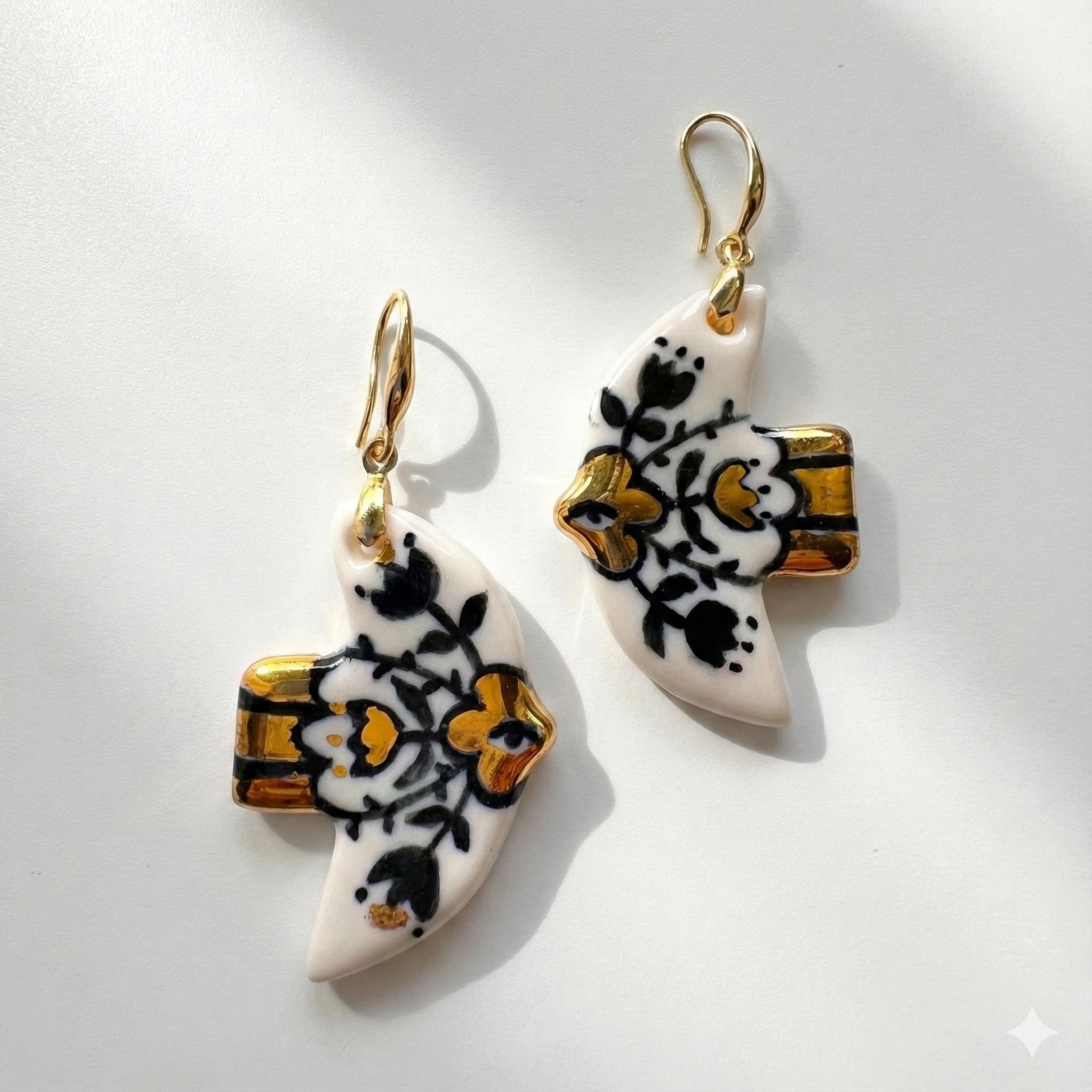 Each piece undergoes a rigorous triple-firing process at 1200°C to ensure durability and a glass-like finish. Suspended from elegant 18k gold-plated brass hooks, these statement earrings remain incredibly lightweight, offering bold style without the weight.